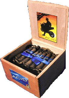 Acid Earthiness Unquestionably the fullest bodied cigar in the whole Acid cigar line. It finishes with a hint of white pepper that will knock you on your butt. Tasty Sumatra wrapper. 24 Cigars Size: 5x42